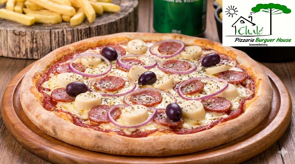 Pizza Especial - ChaléMolho de tomate, Mussarela, Calabresa, Frango desfiado, Bacon, Milho, Ovo, Cheddar, Azeitona e Orégano.R$ 53,00