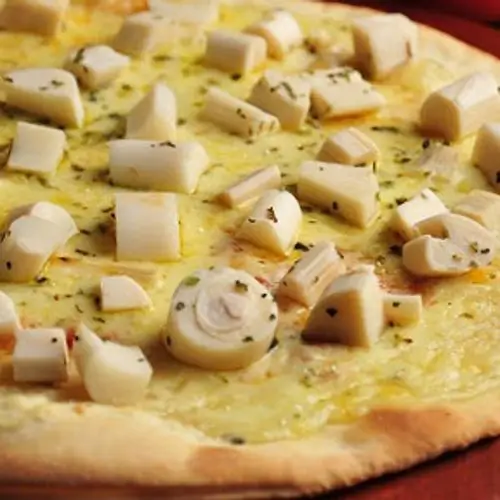 Pizza PalmitoMolho de tomate, Mussarela, Palmito, Requeijão, Azeitona e Orégano.R$ 38,00