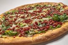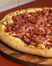 Pizza BaconMolho de tomate, Mussarela, Bacon, Tomate picado, Azeitona e Orégano.R$ 38,00