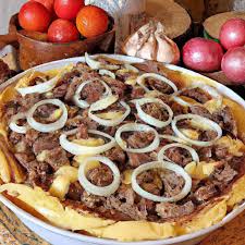 Pizza Especial - Strogonoff de CarneMolho de tomate, Mussarela, Strogonoff, Batata-palha, Champignon, Azeitona e Orégano.R$ 53,00
