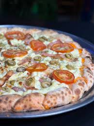 Pizza TropicalMolho de tomate, Mussarela, Calabresa, Palmito, Cebola, Azeitona e Orégano.R$ 38,00