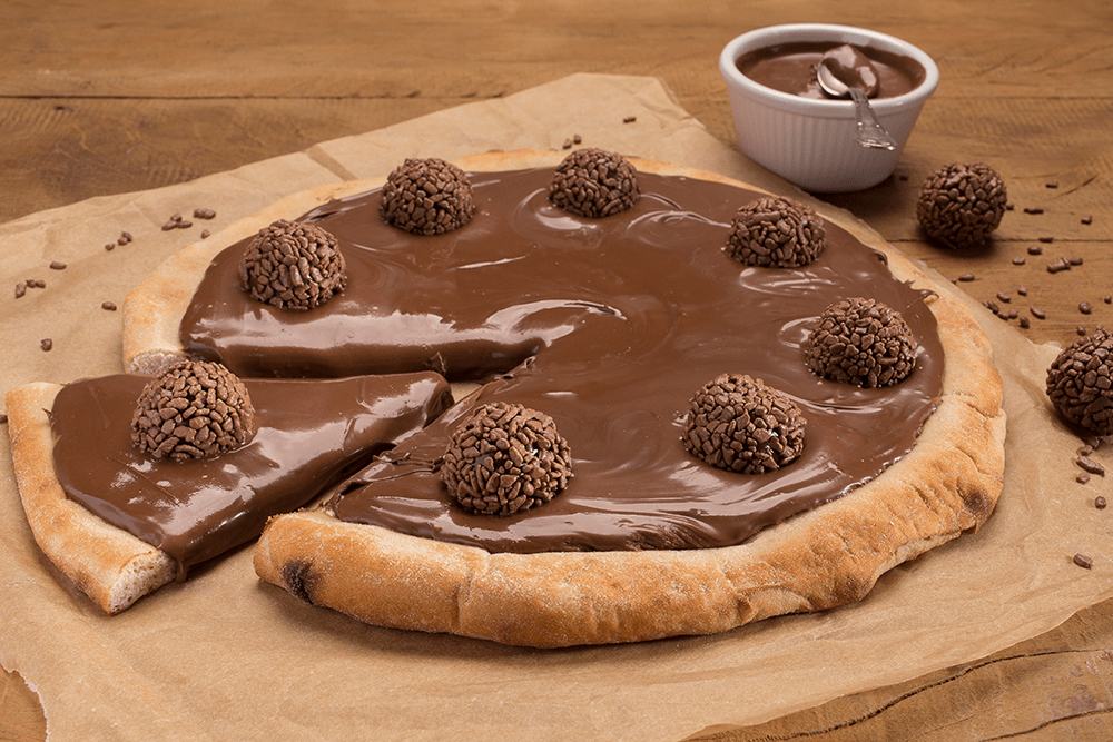 Pizza Doce - BrigadeiroMussarela, Chocolate ao Leite e Granulado.R$ 45,00