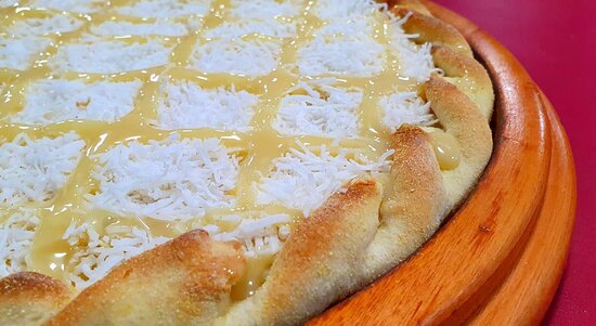 Pizza Doce - BeijinhoMussarela, Chocolate Branco e Beijinho.R$ 45,00