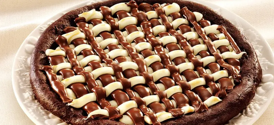Pizza Doce - Banana NevadaMussarela, Chocolate Branco, Banana, Leite Condensado e Canela.R$ 45,00